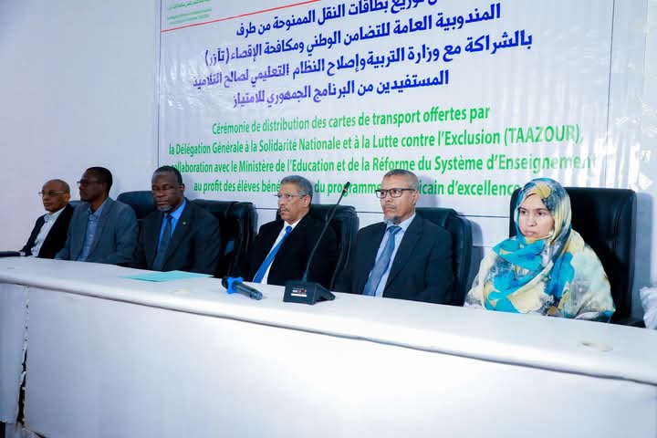 أشرف الأمين العام لوزارة التربية وإصلاح النظام التعليمي، السيد يحيى بوب الطالب، رفقة الأمين العام للمندوبية العامة للتضامن ومكافحة الإقصاء (تآزر)، السيد صدفي سيد محمد، صباح الجمعة، على حفل توزيع بطاقات النقل المجاني لصالح تلاميذ مدارس الامتياز الجمهوري، وذلك خلال حفل احتضنته قاعة الاجتماعات بالمعهد التربوي الوطني.