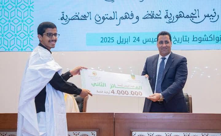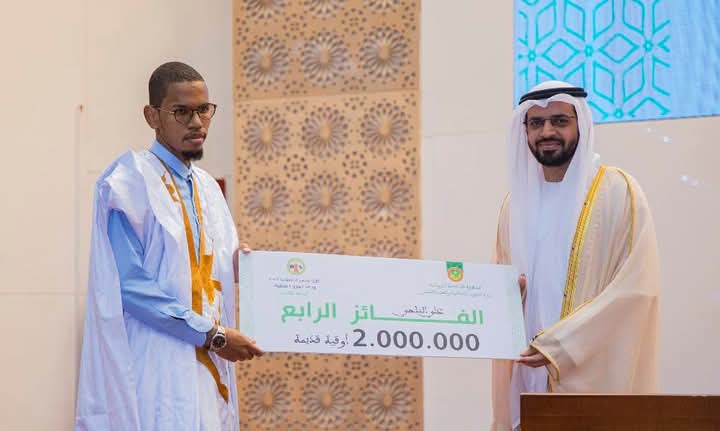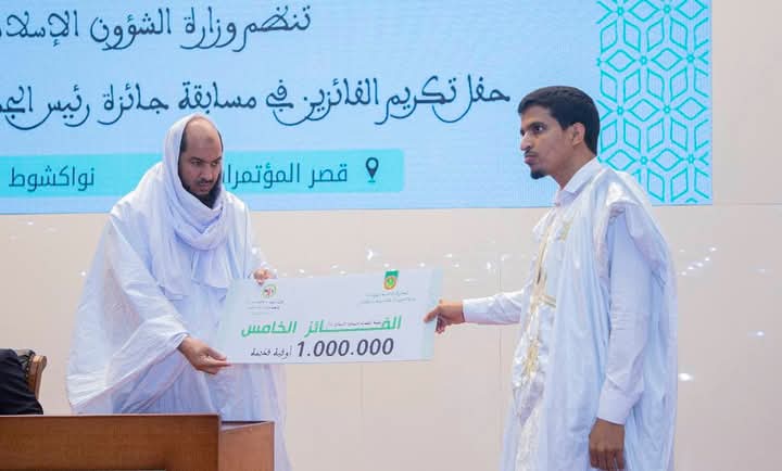 وتم تسليم الجوائز المالية التي بلغت خمسة ملايين أوقية قديمة للفائز الأول، وأربعة ملايين للثاني، وثلاثة ملايين للثالث، من طرف فخامة الرئيس والوزير الأول ووزير الشؤون الإسلامية على التوالي.