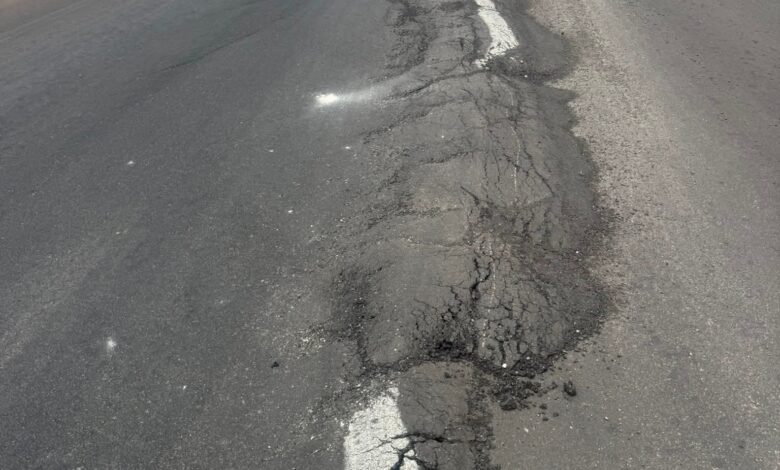 – ظهرت التشوهات عند نهاية المحور وقبل التقائه بالطريق الرئيسي القديم.